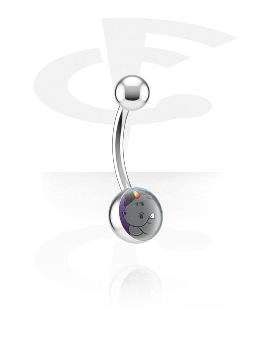 Naparengas (kirurginen teräs, hopea, kiiltävä pinta) kanssa Paksu yksisarvinen -design