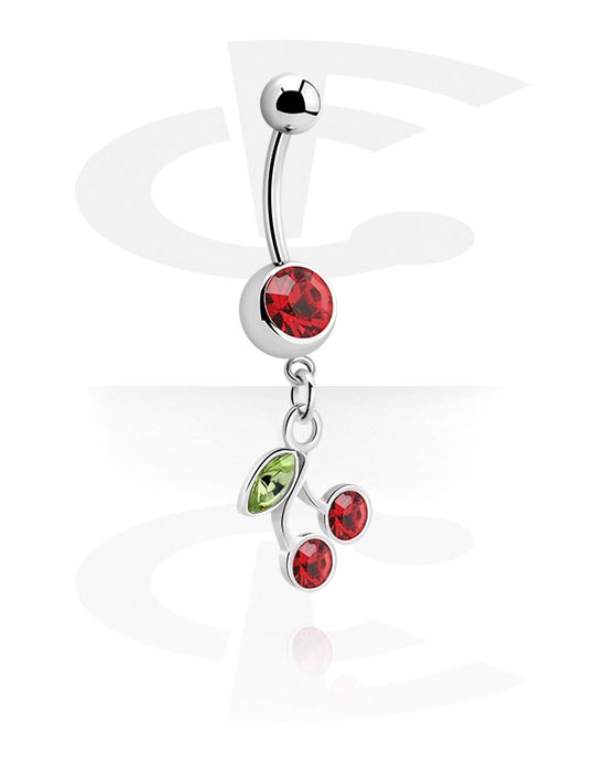 Naparengas (kirurginen teräs, hopea, kiiltävä pinta) kanssa kirsikkariipus ja kristallikivet