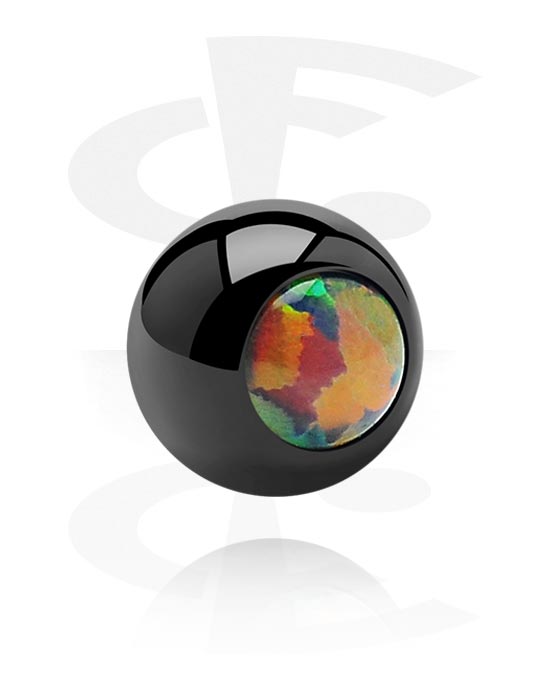 Pallo kierrepuikoille (kirurginen teräs, musta, kiiltävä pinta) kanssa synteettinen opaali
