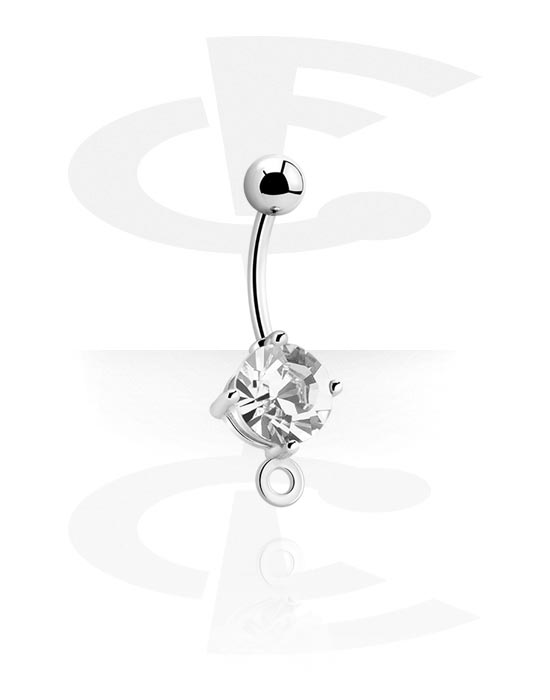 Naparengas (kirurginen teräs, hopea, kiiltävä pinta) kanssa rengas lisäosiin ja kristallikivi