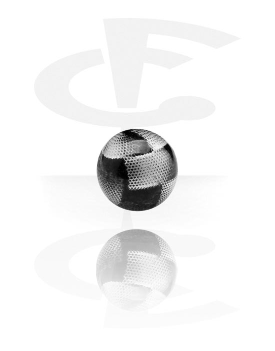 Pallon pintaan on painettu musta-harmaa kuvio. Pallo sopii 1.6-mm-tappeihin. Huom. ei kielilävistykseen!