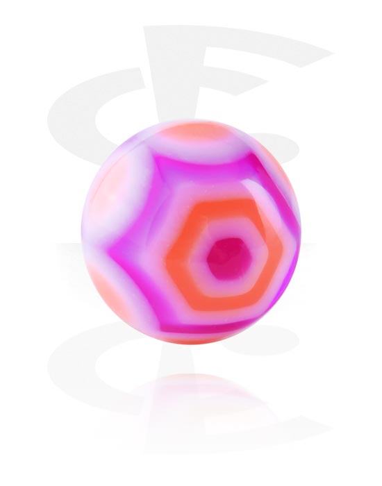 Akryylipallossa on värikäs kuvio. Se sopii 1.6mm-tappeihin ja sitä voi käyttää esimerkiksi huuli- tai kielilävistyksessä.