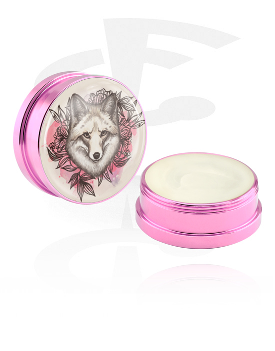High quality jewelled container in a plug-like look, made of anodised aluminium. Available in various colours and designs. The deodorising conditioning creme takes care of your stretched earlobes and prevents bad smells. After a quick and easy application, the natural ingredients provide optimal skincare and nice smells.