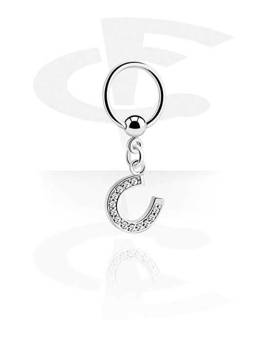 Ball closure ring (acier chirurgical, argent, finition brillante) avec pendentif fer à cheval et pierres en cristal