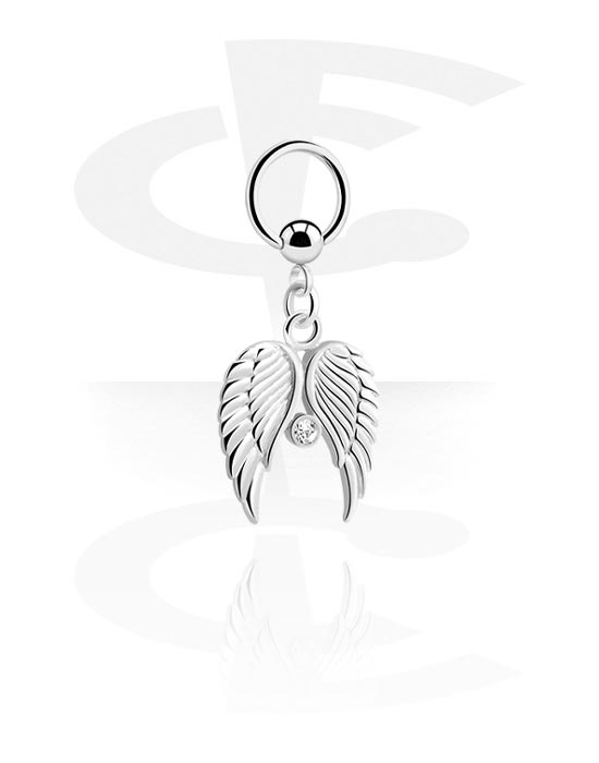 Ball closure ring (acier chirurgical, argent, finition brillante) avec pendentif aile et pierre en crystal