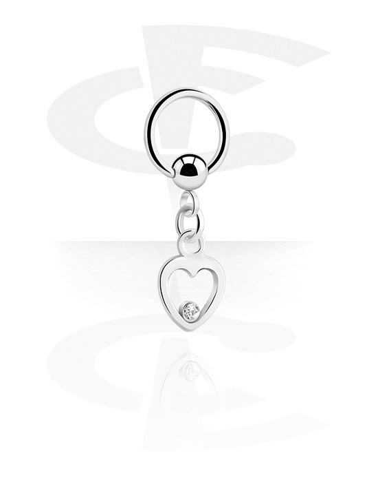 Ball closure ring (acier chirurgical, argent, finition brillante) avec pendentif coeur et pierre en crystal