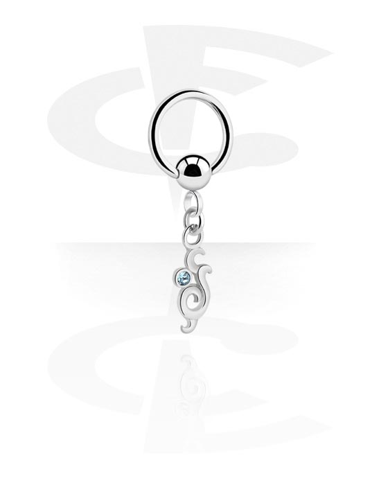 Ball closure ring (acier chirurgical, argent, finition brillante) avec pendentif et pierre en crystal