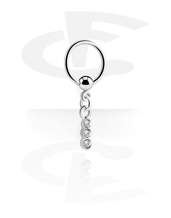 Ball closure ring (acier chirurgical, argent, finition brillante) avec pendentif et pierres en cristal
