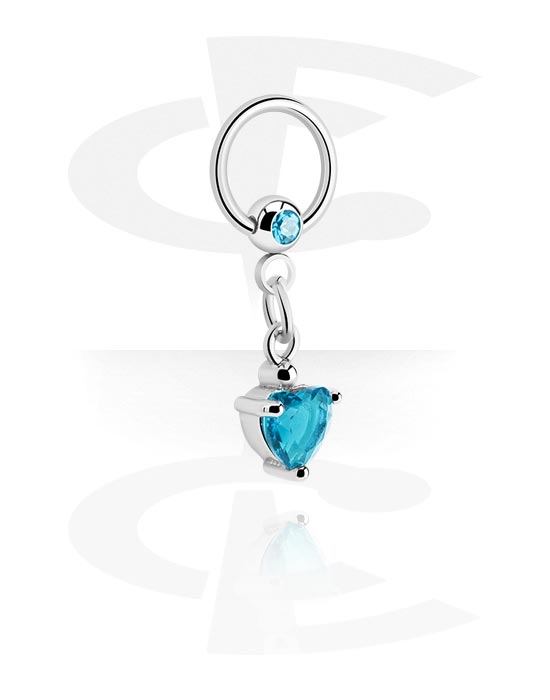 Ball closure ring (acier chirurgical, argent, finition brillante) avec pendentif et pierre en crystal