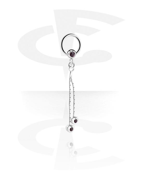 Ball closure ring (acier chirurgical, argent, finition brillante) avec pierre en crystal et pendentif
