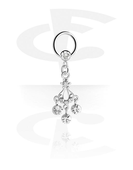 Ball closure ring (acier chirurgical, argent, finition brillante) avec pierre en crystal et pendentif