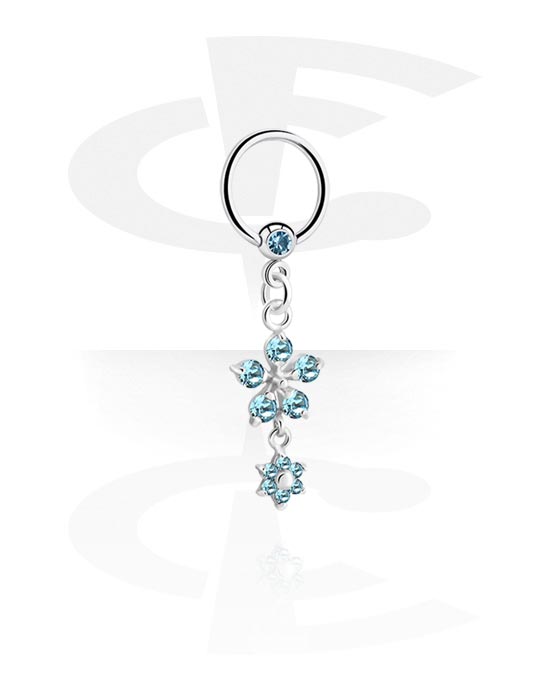 Ball closure ring (acier chirurgical, argent, finition brillante) avec pierre en crystal et pendentif fleur