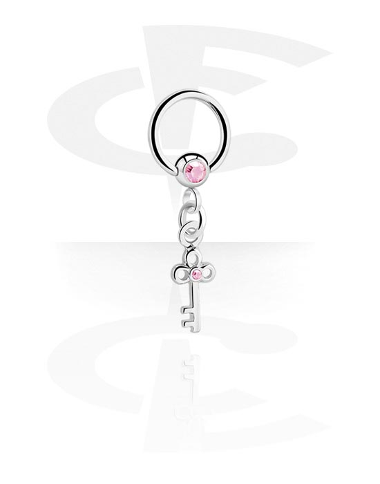 Ball closure ring (acier chirurgical, argent, finition brillante) avec pierre en crystal et accessoire clé