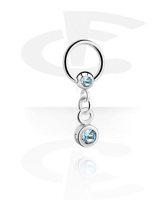 Ball closure ring (acier chirurgical, argent, finition brillante) avec pierre en crystal et pendentif
