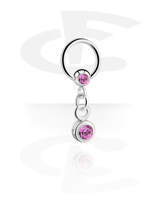 Ball closure ring (acier chirurgical, argent, finition brillante) avec pierre en crystal et pendentif