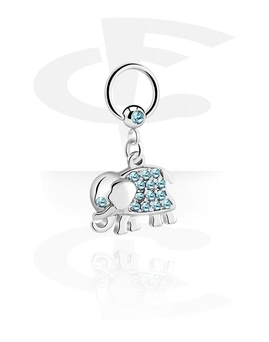 Ball closure ring (acier chirurgical, argent, finition brillante) avec pendentif éléphant et pierres en cristal