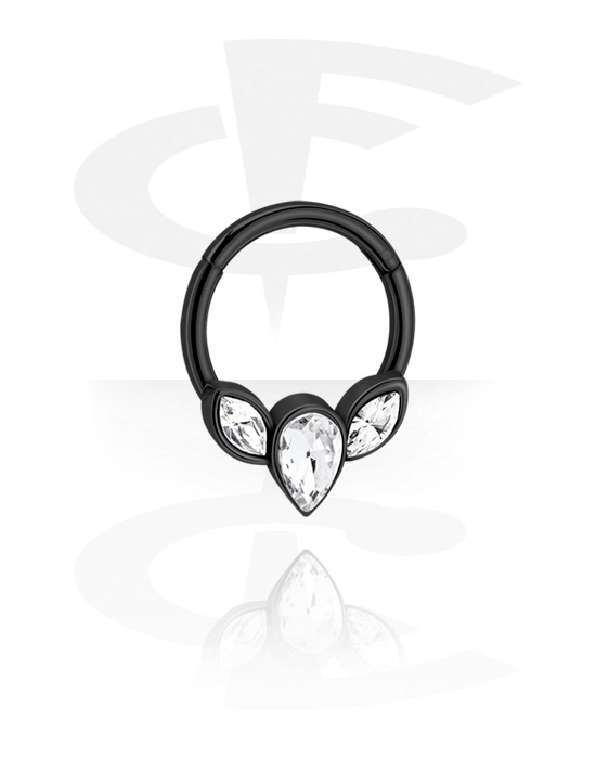 Multi-purpose clicker (acier chirurgical, noir, finition brillante) avec pierres en cristal