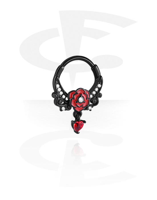 Multi-purpose clicker (acier chirurgical, noir, finition brillante) avec motif rose et pierres en cristal