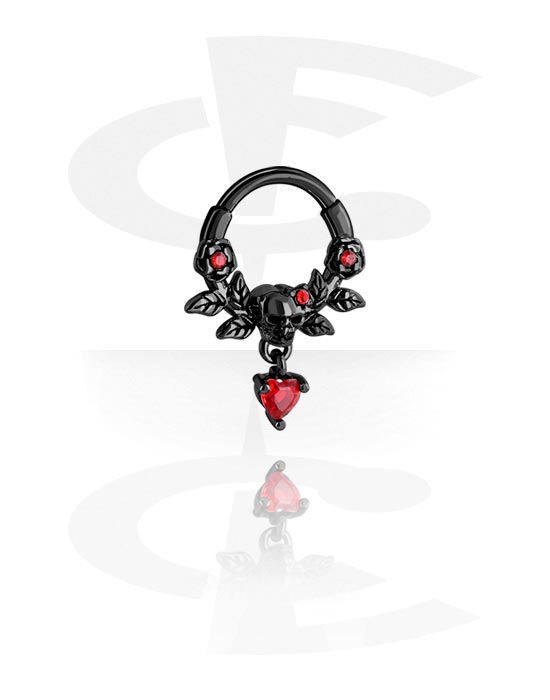 Multi-purpose clicker (acier chirurgical, noir, finition brillante) avec motif tête de mort et coeur en cristal