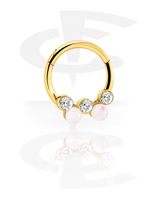 Piercing clicker (acier chirurgical, or, finition brillante) avec pierres en cristal et opale synthétique