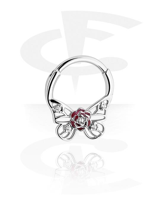 Multi-purpose clicker (acier chirurgical, argent, finition brillante) avec papillon et motif rose