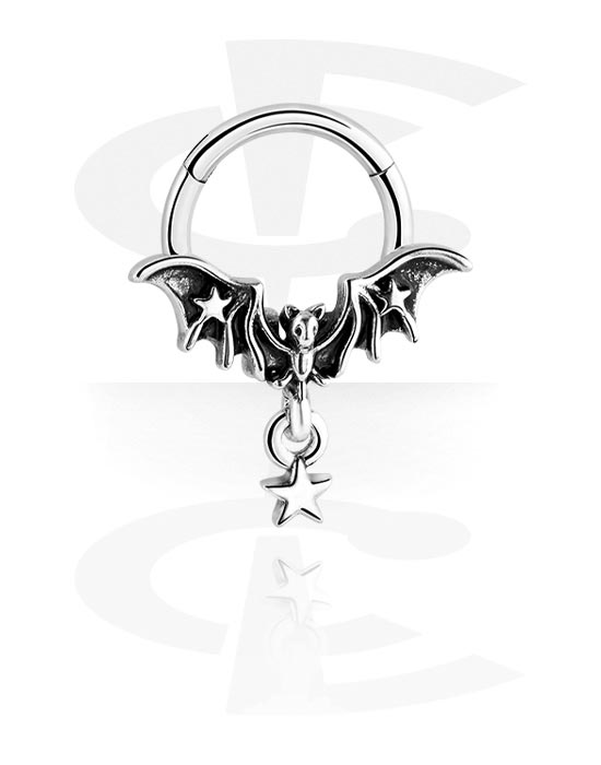 Multi-purpose clicker (acier chirurgical, argent, finition brillante) avec motif chauve-souris et pendentif étoile
