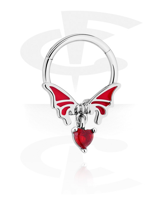 Multi-purpose clicker (acier chirurgical, argent, finition brillante) avec motif chauve-souris et coeur en cristal