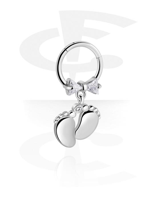 Multi-purpose clicker (acier chirurgical, argent, finition brillante) avec pendentif pied et pierres en cristal