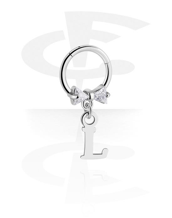 Multi-purpose clicker (acier chirurgical, argent, finition brillante) avec pendentif lettre et pendentif lettre "l"