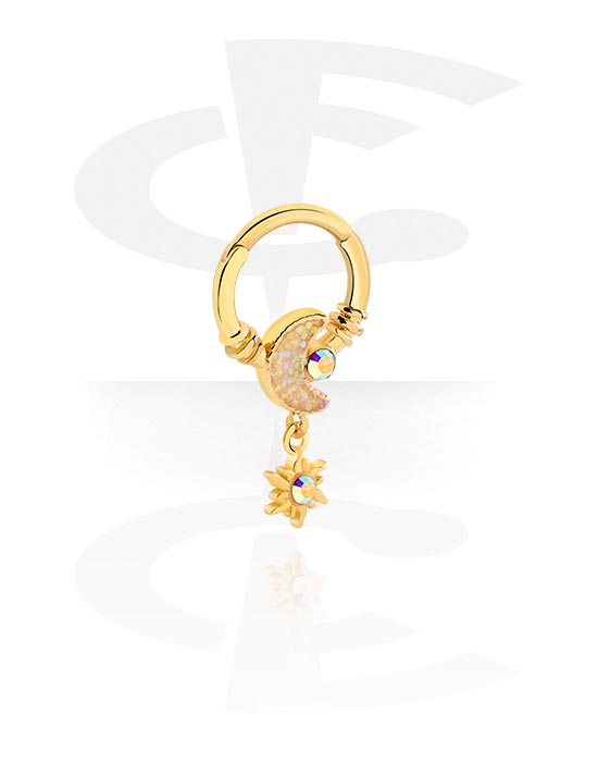 Piercing clicker (acier chirurgical, or, finition brillante) avec Design Demi-lune et pierres en cristal