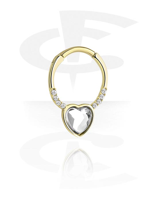 Piercing clicker (surgical steel, zircon steel, shiny finish) avec motif coeur et pierres en cristal