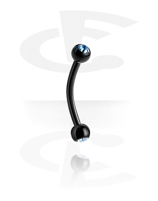 Piercing pour le nombril (acier chirurgical, noir, finition brillante) avec pierres en cristal