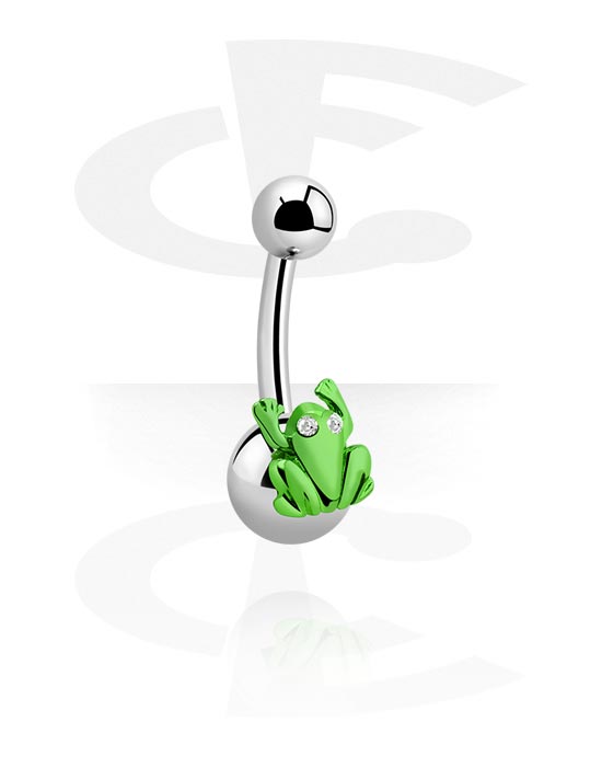 Piercing pour le nombril (acier chirurgical, argent, finition brillante) avec motif grenouille et pierres en cristal