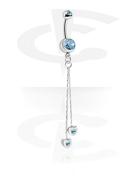 Piercing pour le nombril (acier chirurgical, argent, finition brillante) avec pendentif coeur et pierres en cristal