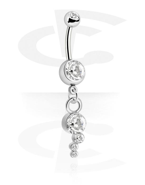 Piercing pour le nombril (acier chirurgical, argent, finition brillante) avec pendentif et pierres en cristal