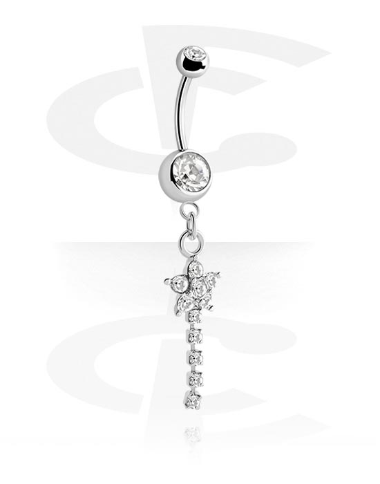 Piercing pour le nombril (acier chirurgical, argent, finition brillante) avec pendentif fleur et pierres en cristal