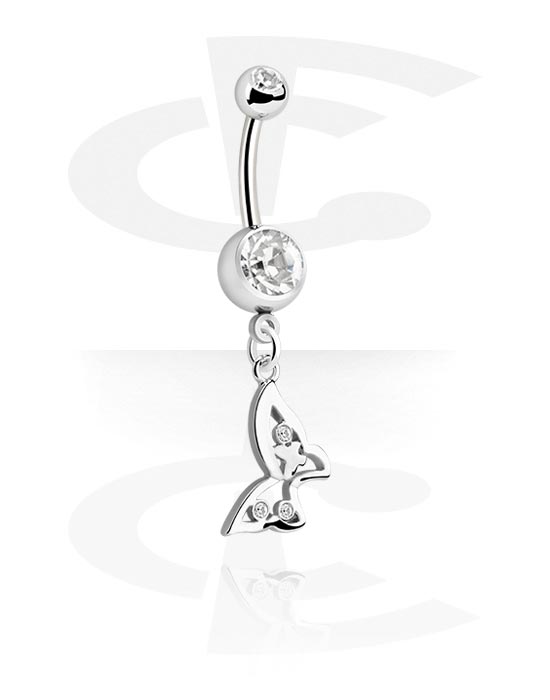 Piercing pour le nombril (acier chirurgical, argent, finition brillante) avec accessoire papillon et pierres en cristal