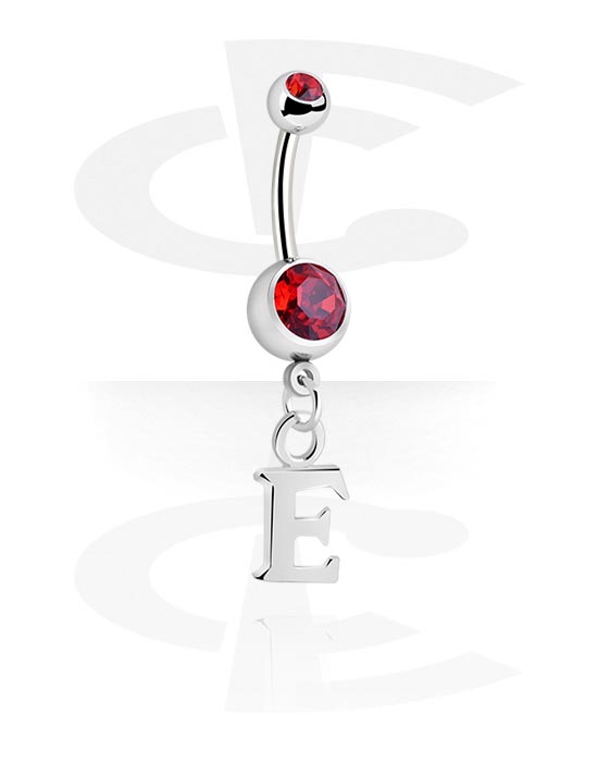 Piercing pour le nombril (acier chirurgical, argent, finition brillante) avec boule avec pierre en cristal et pendentif lettre "E"