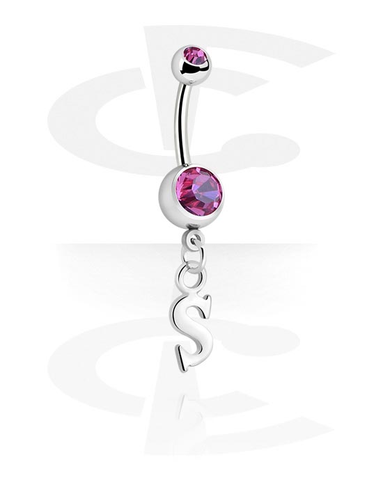 Piercing pour le nombril (acier chirurgical, argent, finition brillante) avec pendentif lettre "s" et pierres en cristal