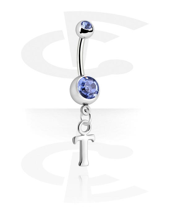 Piercing pour le nombril (acier chirurgical, argent, finition brillante) avec pendentif lettre "T" et pierres en cristal