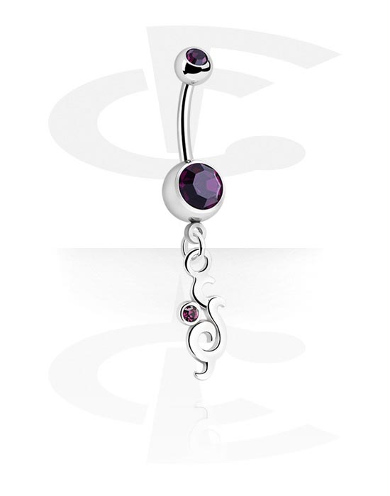 Piercing pour le nombril (acier chirurgical, argent, finition brillante) avec pendentif et pierres en cristal