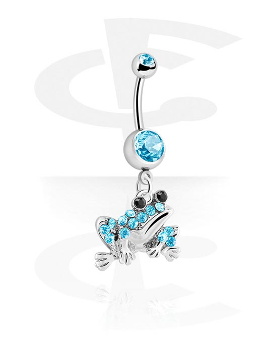 Piercing pour le nombril (acier chirurgical, argent, finition brillante) avec accessoire grenouille et pierres en cristal