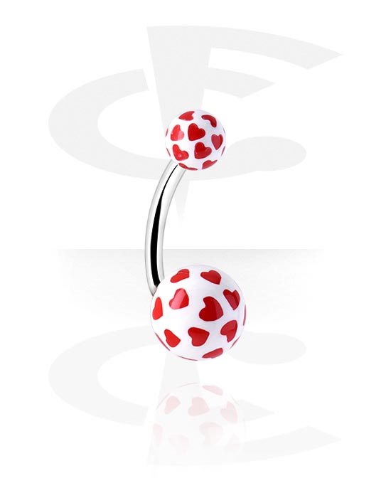 Piercing pour le nombril (acier chirurgical, argent, finition brillante) avec boules en acrylique et motif coeur