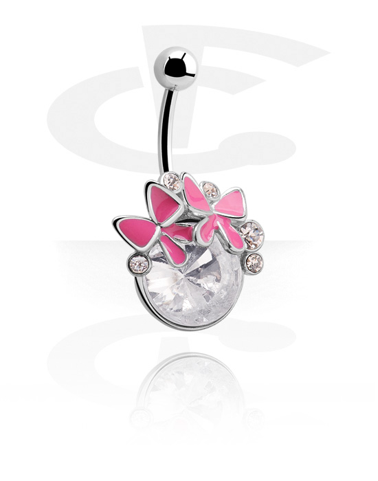Piercing pour le nombril (acier chirurgical, argent, finition brillante) avec motif noeud et pierres en cristal