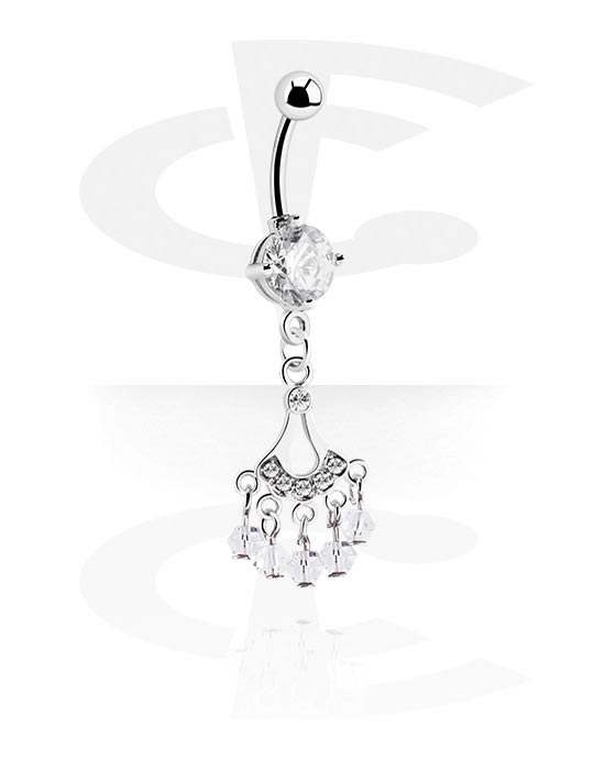 Piercing pour le nombril (acier chirurgical, argent, finition brillante) avec pendentif et pierres en cristal