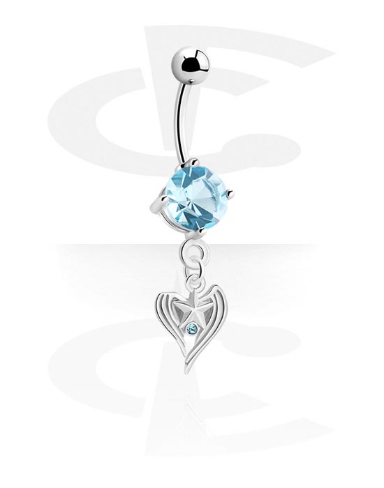Piercing pour le nombril (acier chirurgical, argent, finition brillante) avec pendentif coeur et pierres en cristal
