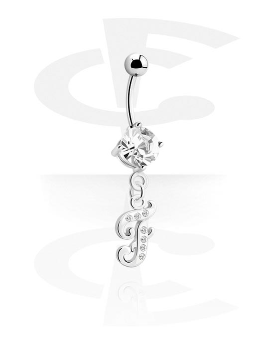 Piercing pour le nombril (acier chirurgical, argent, finition brillante) avec pendentif lettre "F" et pierres en cristal