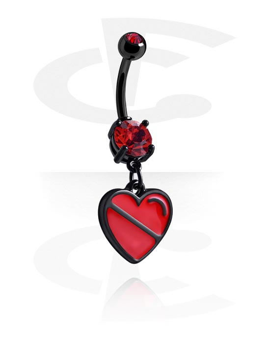 Piercing pour le nombril (acier chirurgical, noir, finition brillante) avec motif coeur et pierres en cristal