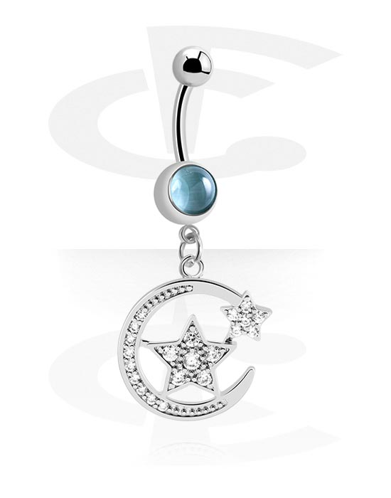 Piercing pour le nombril (acier chirurgical, argent, finition brillante) avec pendentif étoile et pierres en cristal