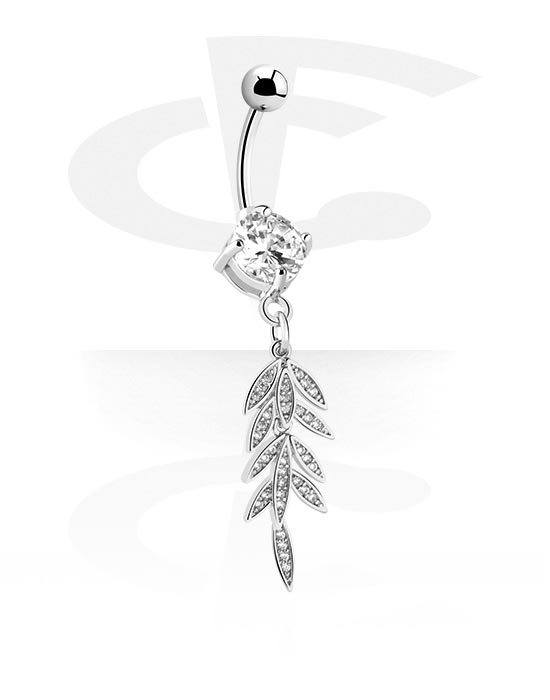 Piercing pour le nombril (acier chirurgical, argent, finition brillante) avec pendentif feuille et pierres en cristal